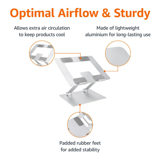 Amazon Basics Ergonomic and Foldable Laptop Stand for Desk, Adjustable Riser, Fits all Laptops and Notebooks up to 17.3 Inch, 10 x 8.7 x 6 in, Silver