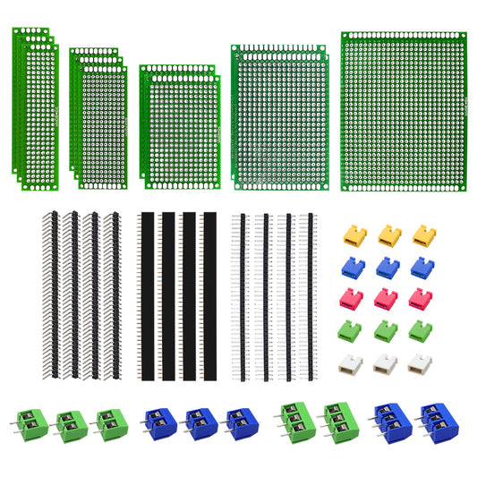 174-Piece PCB Circuit Board Prototype Kit, Double-Sided Perf Boards in 6 Sizes (Large, Medium, Small), Compatible with Arduino, Includes 40-Pin 2.54mm Male and Female Headers