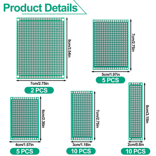 32 Pcs PCB Board, Green Circuit Board with 5 Sizes Compatible, Double Sided PCB Prototype Board for DIY Electronics Projects Apply to Soldering Projects